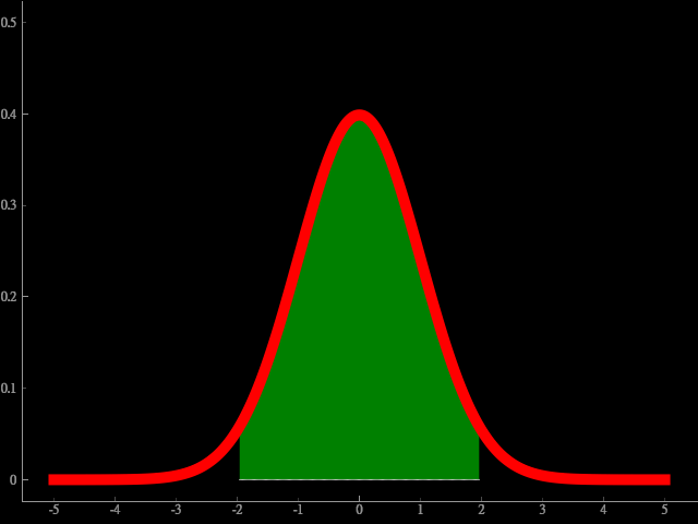 繪製標準常態 PDF 函數在 95% 信心水準下的面積,如下右圖。