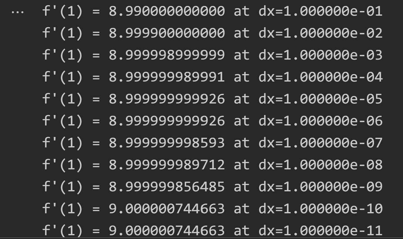 練習: Observe the value of by decreasing “dx” from