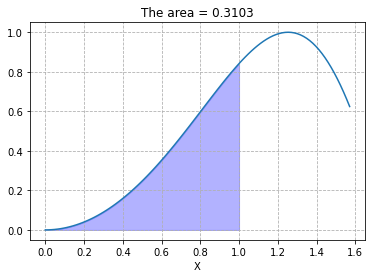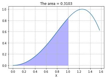 ax.set_title("The area = {:.4f}".format(result[0]))