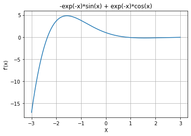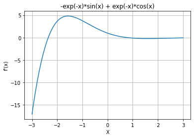 f = sym.exp(-x) * sym.sin(x)