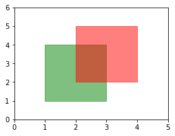 rec2 = pat.Rectangle((2, 2), 2, 3, color ='red', alpha = 0.5)