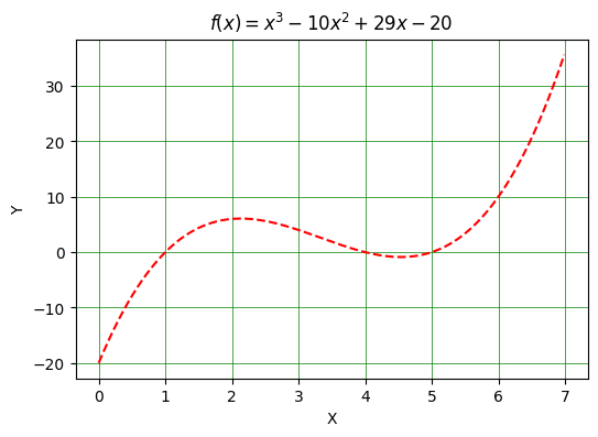 f = lambda x : x**3 - 10*x**2 + 29*x - 20