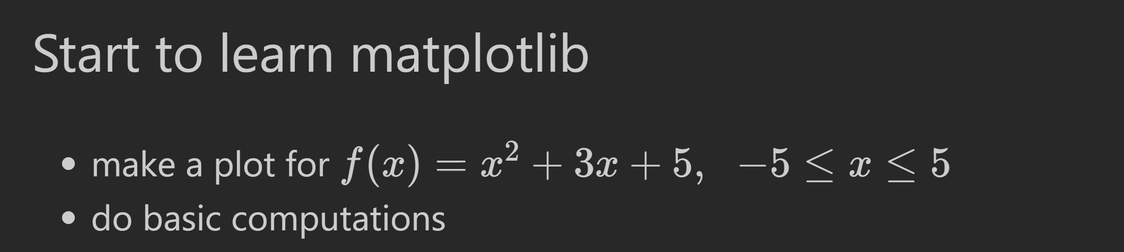 Python 有幾個著名的繪圖套件,如 matplotlib, seaborn, plotly, pyqtgraph…等,各擅勝場。這些套件都非常龐大,功能甚多,較難同時學習。在此選擇從 matplotlib 開始熟悉,若不足之處再考慮加入其他套件。