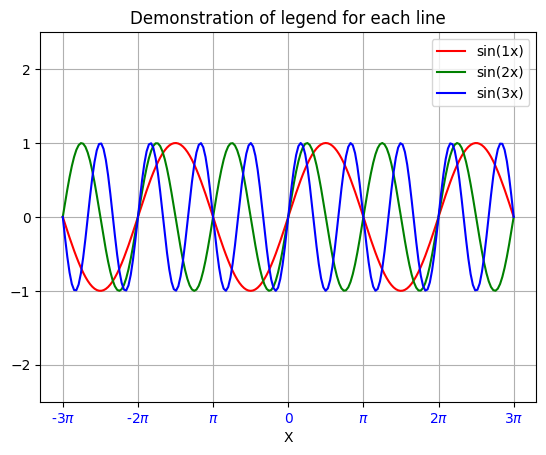程式也示範如何在迴圈中組合文字與動態的數字, 如 label = ‘sin({}x)’.format(i).