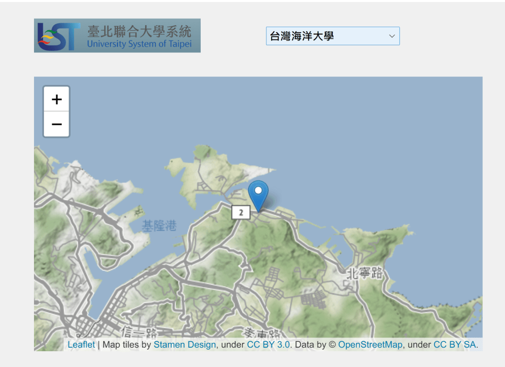 練習: 製作一張地圖,呈現台北聯合大學的四所學校的圖標,如圖一;也可以呈現任一學校的位置,如圖二。