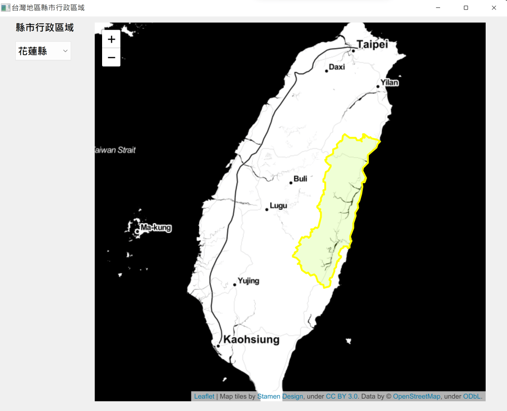 範例 1: 在 PyQt GUI 中呈現 Folium 地圖,如下圖。
