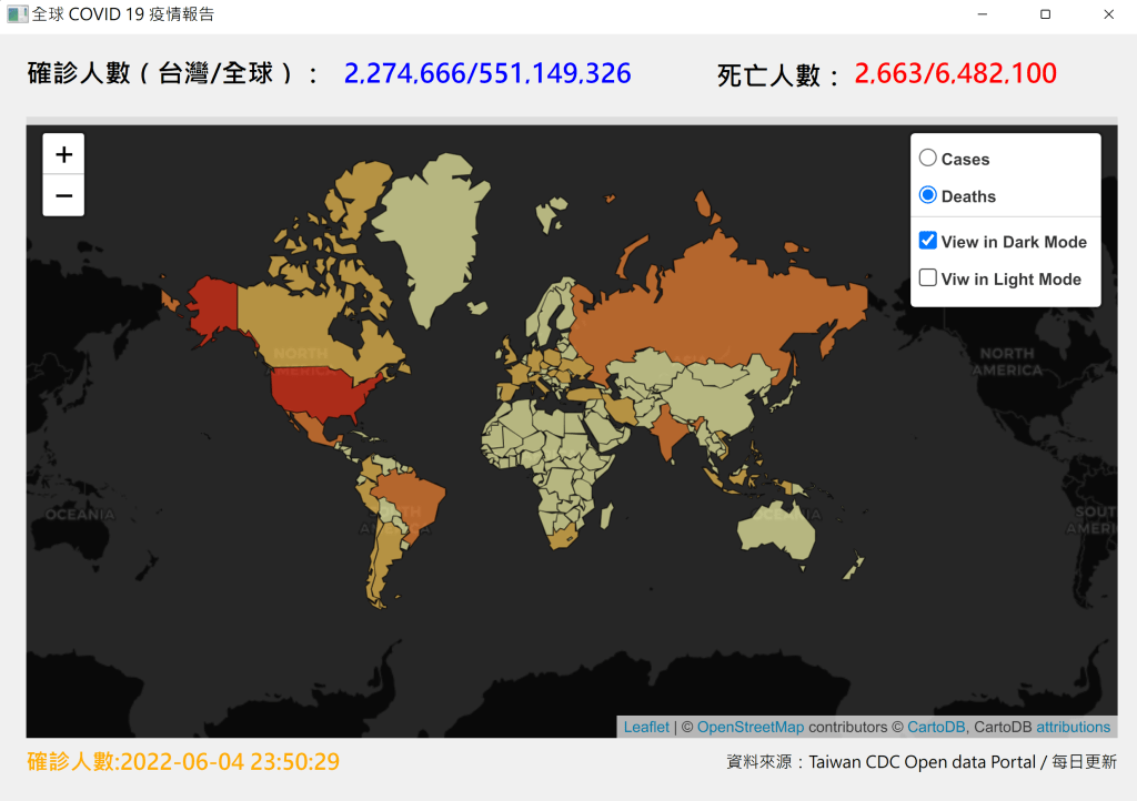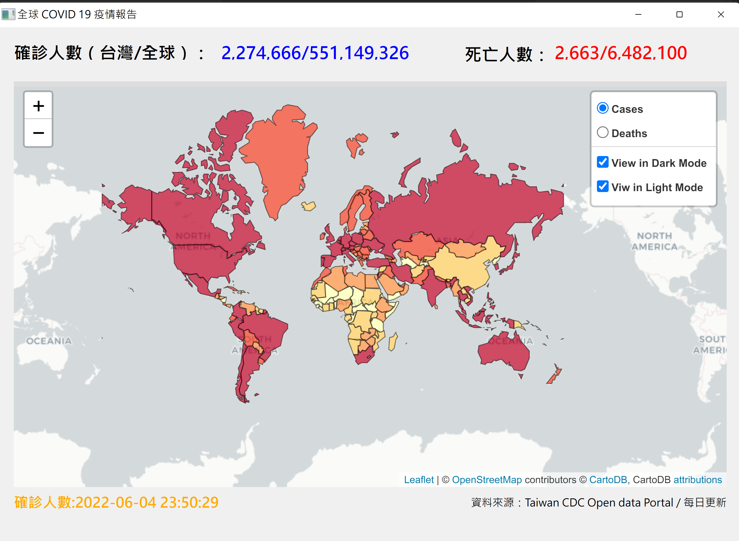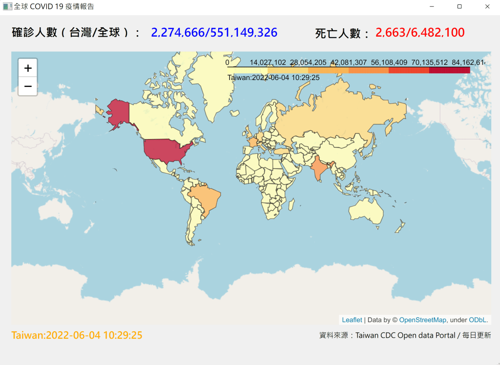 最後將該網頁型態的地圖資料(已經是一個 GUI 上的 widget),以 addWidget 的方式加入原先在 Designer 設計好的 Vertival Layout。為避免後續呈現其他地圖時,重複 addWidget,必須先清除舊的 widget。