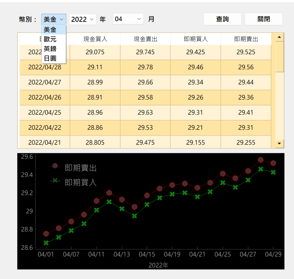 header = ["日期","現金買入","現金賣出","即期買入","即期賣出"]
